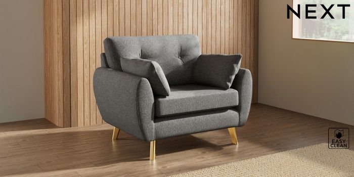 7.3.1 Buy Wilson Buttoned Back Snuggle Tweedy Blend Easy Clean Dark Grey Metal Tapered - Gold from the Next UK online shop Click here to use our accessible website