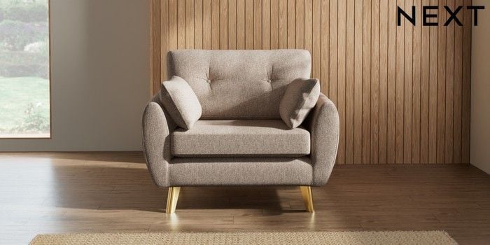 7.3.1 Buy Wilson Buttoned Back Snuggle Tweedy Chenille Mid Natural Metal Tapered - Gold from the Next UK online shop Click here to use our accessible website