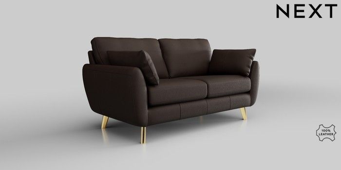 6.12.1 Buy Wilson Leather 2 Seater Sofa Turin Leather Dark Brown Metal Tapered - Gold from the Next UK online shop Click here to use our accessible website