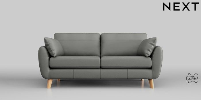 6.11.8 Buy Wilson Leather 3 Seater Small Sofa Columbia French Grey Retro Tapered - Light from the Next UK online shop Click here to use our accessible website