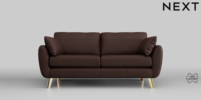 7.0.3 Buy Wilson Leather 3 Seater Small Sofa Rustic Leather Dark Brown Metal Tapered - Gold from the Next UK online shop Click here to use our accessible website