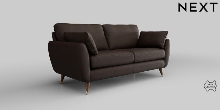 6.12.1 Buy Wilson Leather 3 Seater Small Sofa Turin Leather Dark Brown Low Retro Tapered Metal Cap - Mid from the Next UK online shop Click here to use our accessible website