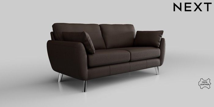 6.12.1 Buy Wilson Leather 3 Seater Small Sofa Turin Leather Dark Brown Metal Tapered - Chrome from the Next UK online shop Click here to use our accessible website