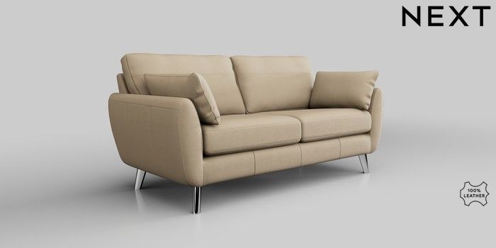 6.12.1 Buy Wilson Leather 3 Seater Small Sofa Turin Leather Light Natural Metal Tapered - Chrome from the Next UK online shop Click here to use our accessible website
