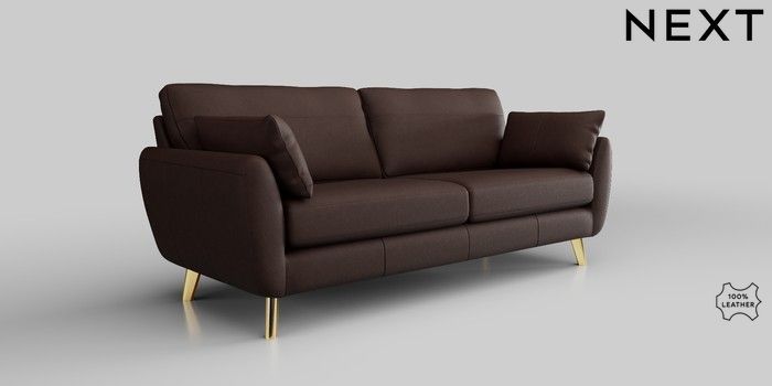 6.12.1 Buy Wilson Leather 3 Seater Sofa Rustic Leather Dark Brown Metal Tapered - Gold from the Next UK online shop Click here to use our accessible website