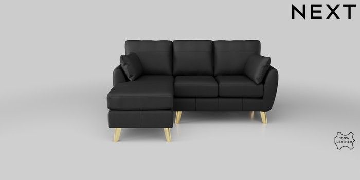 6.12.1 Buy Wilson Leather Small Sofa Chaise - Left Hand Columbia Black Metal Tapered - Gold from the Next UK online shop Click here to use our accessible website