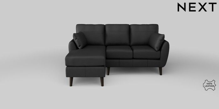 6.12.1 Buy Wilson Leather Small Sofa Chaise - Left Hand Columbia Black Retro Tapered - Dark from the Next UK online shop Click here to use our accessible website