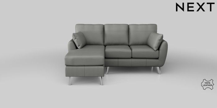 6.12.1 Buy Wilson Leather Small Sofa Chaise - Left Hand Columbia French Grey Metal Tapered - Chrome from the Next UK online shop Click here to use our accessible website