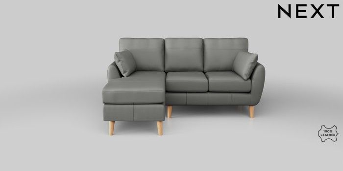 6.12.1 Buy Wilson Leather Small Sofa Chaise - Left Hand Columbia French Grey Retro Tapered - Light from the Next UK online shop Click here to use our accessible website