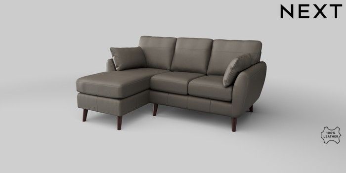 7.0.3 Buy Wilson Leather Small Sofa Chaise - Left Hand Turin Leather French Grey Retro Tapered - Dark Brown from the Next UK online shop Click here to use our accessible website