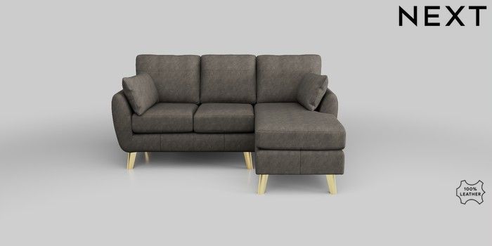 6.12.13 Buy Wilson Leather Small Sofa Chaise - Right Hand Antiqued Leather Grey Metal Tapered - Gold from the Next UK online shop Click here to use our accessible website