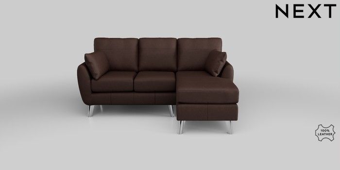 7.0.3 Buy Wilson Leather Small Sofa Chaise - Right Hand Rustic Leather Dark Brown Metal Tapered - Chrome from the Next UK online shop Click here to use our accessible website