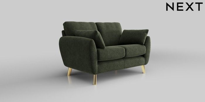 6.12.1 Buy Wilson 2 Seater Small Sofa Boucle Chenille Dark Moss Green Metal Tapered - Gold from the Next UK online shop Click here to use our accessible website