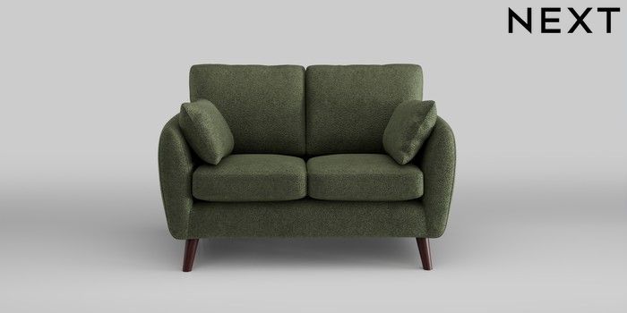 6.12.1 Buy Wilson 2 Seater Small Sofa Boucle Chenille Dark Moss Green Retro Tapered - Dark Brown from the Next UK online shop Click here to use our accessible website