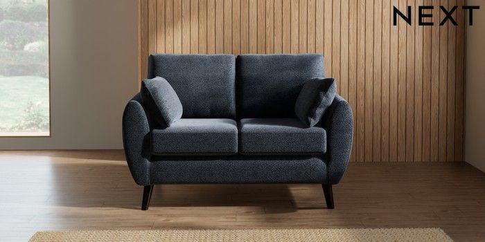 7.3.1 Buy Wilson 2 Seater Small Sofa Boucle Chenille Dark Slate Blue Retro Tapered - Dark from the Next UK online shop