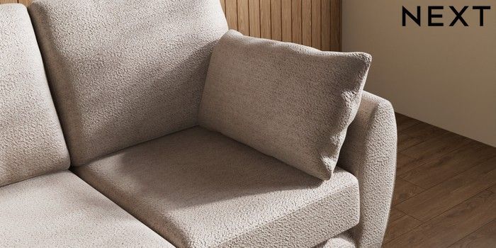 7.3.1 Buy Wilson 2 Seater Small Sofa Boucle Chenille Light Natural Low Retro Tapered Metal Cap - Mid from the Next UK online shop