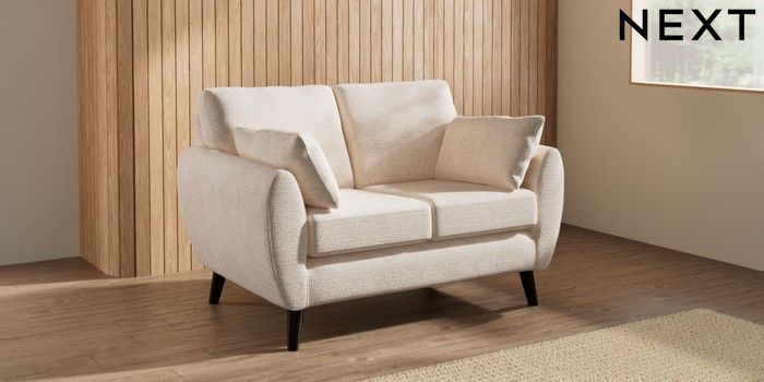 7.3.1 Buy Wilson 2 Seater Small Sofa Boucle Chenille Oyster Retro Tapered - Dark from the Next UK online shop