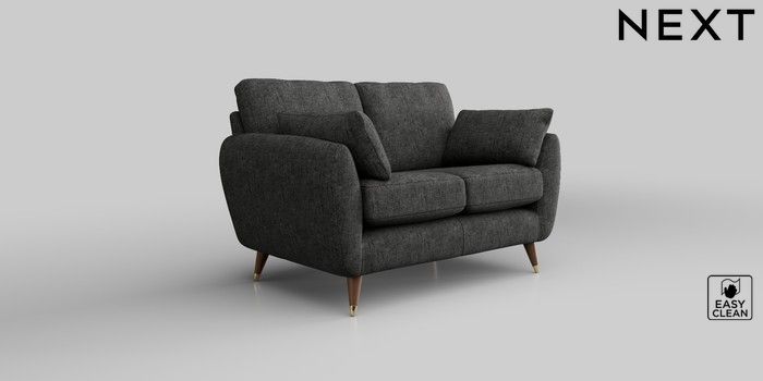 6.12.1 Buy Wilson 2 Seater Small Sofa Boucle Weave Easy Clean Charcoal Grey Low Retro Tapered Metal Cap - Mid from the Next UK online shop Click here to use our accessible website