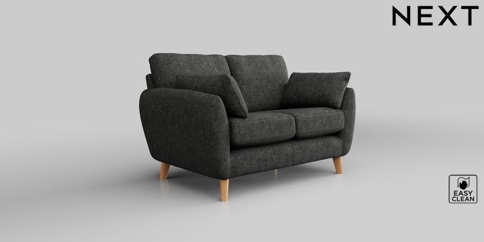 6.12.1 Buy Wilson 2 Seater Small Sofa Boucle Weave Easy Clean Charcoal Grey Retro Tapered - Light from the Next UK online shop Click here to use our accessible website