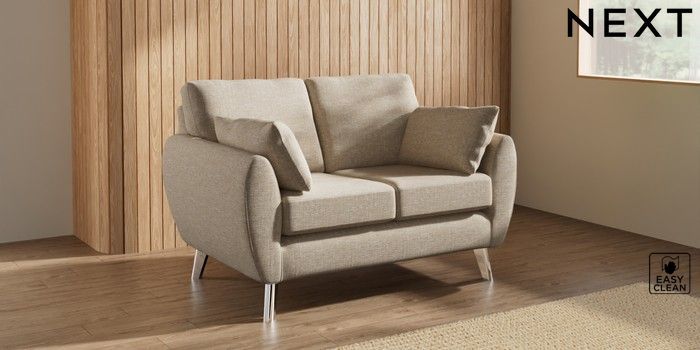 7.3.1 Buy Wilson 2 Seater Small Sofa Boucle Weave Easy Clean Dark Natural Metal Tapered - Chrome from the Next UK online shop