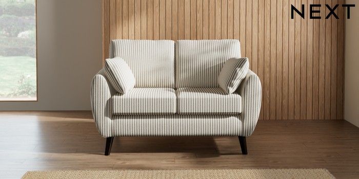 7.2.10 Buy Wilson 2 Seater Small Sofa Chenille Stripe Moss Green Retro Tapered - Dark from the Next UK online shop Click here to use our accessible website