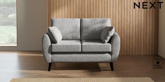 7.2.10 Buy Wilson 2 Seater Small Sofa Chunky Boucle Easy Clean Light Grey Retro Tapered - Dark from the Next UK online shop Click here to use our accessible website