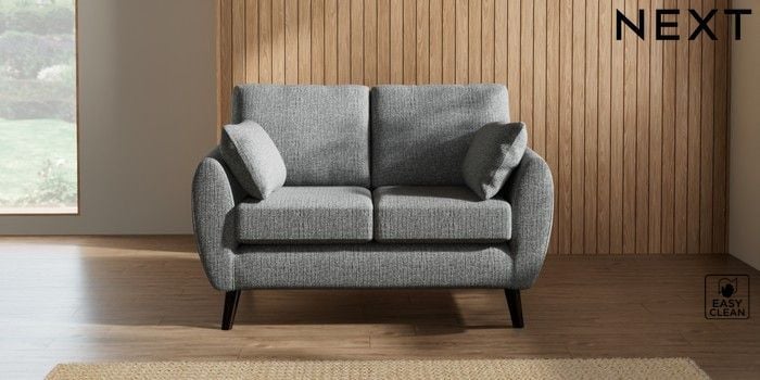 7.2.10 Buy Wilson 2 Seater Small Sofa Chunky Boucle Easy Clean Mid Grey Retro Tapered - Dark from the Next UK online shop Click here to use our accessible website
