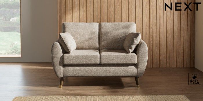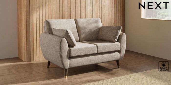 7.3.1 Buy Wilson 2 Seater Small Sofa Chunky Boucle Easy Clean Mid Natural Low Retro Tapered Metal Cap - Mid from the Next UK online shop