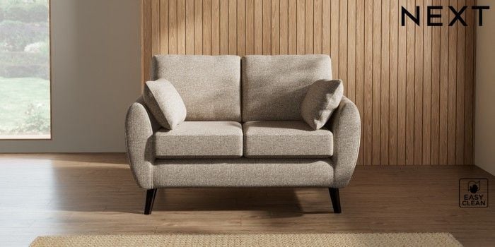7.3.1 Buy Wilson 2 Seater Small Sofa Chunky Boucle Easy Clean Mid Natural Retro Tapered - Dark from the Next UK online shop