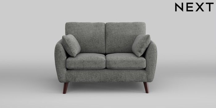 6.12.1 Buy Wilson 2 Seater Small Sofa Chunky Chenille Dark Grey Retro Tapered - Dark Brown from the Next UK online shop Click here to use our accessible website