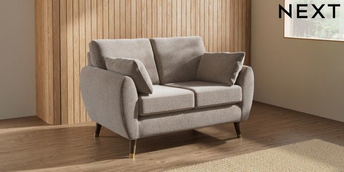 7.3.1 Buy Wilson 2 Seater Small Sofa Chunky Chenille Light Dove Low Retro Tapered Metal Cap - Mid from the Next UK online shop