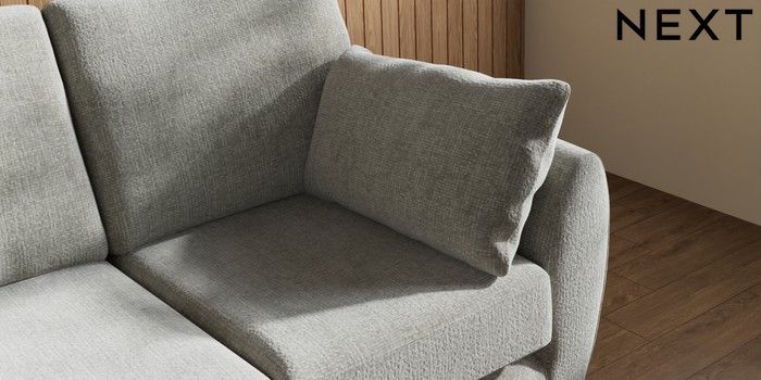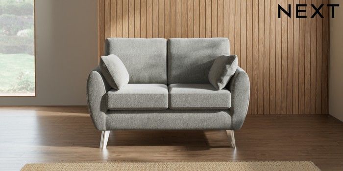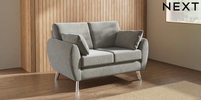 7.3.1 Buy Wilson 2 Seater Small Sofa Chunky Chenille Light Grey Metal Tapered - Chrome from the Next UK online shop