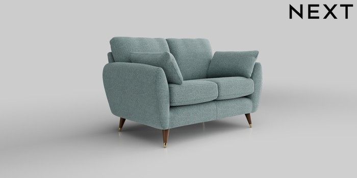 6.12.13 Buy Wilson 2 Seater Small Sofa Chunky Chenille Light Teal Green Low Retro Tapered Metal Cap - Mid from the Next UK online shop Click here to use our accessible website