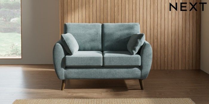 7.3.1 Buy Wilson 2 Seater Small Sofa Chunky Chenille Light Teal Green Retro Tapered - Mid from the Next UK online shop Click here to use our accessible website