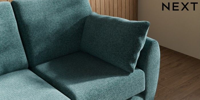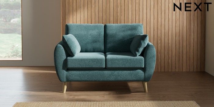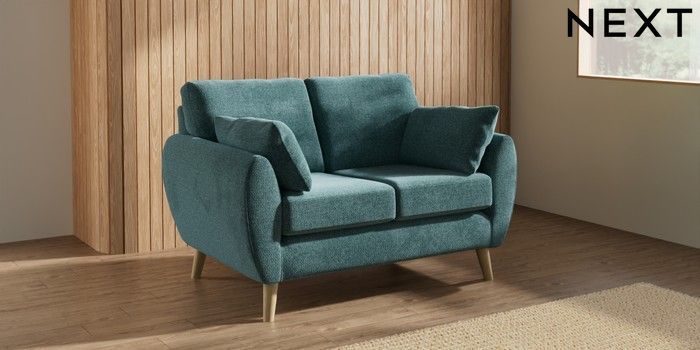 7.3.1 Buy Wilson 2 Seater Small Sofa Chunky Chenille Mid Teal Green Retro Tapered - Light from the Next UK online shop