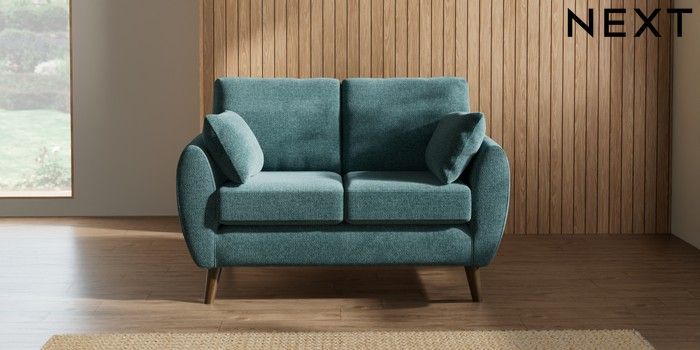 7.3.1 Buy Wilson 2 Seater Small Sofa Chunky Chenille Mid Teal Green Retro Tapered - Mid from the Next UK online shop
