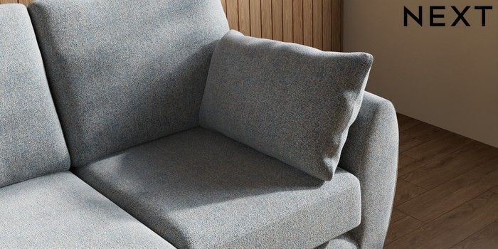 7.3.1 Buy Wilson 2 Seater Small Sofa Chunky Marl Mid Grey Low Retro Tapered Metal Cap - Mid from the Next UK online shop