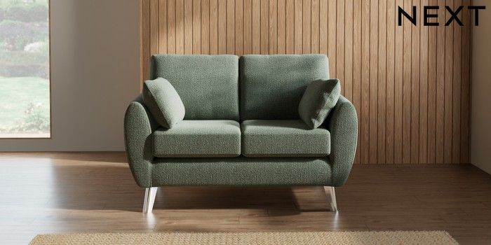7.2.10 Buy Wilson 2 Seater Small Sofa Chunky Texture Mid Forest Green Metal Tapered - Chrome from the Next UK online shop Click here to use our accessible website