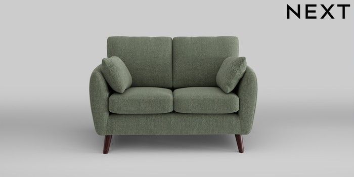 6.12.1 Buy Wilson 2 Seater Small Sofa Chunky Texture Mid Forest Green Retro Tapered - Dark Brown from the Next UK online shop Click here to use our accessible website