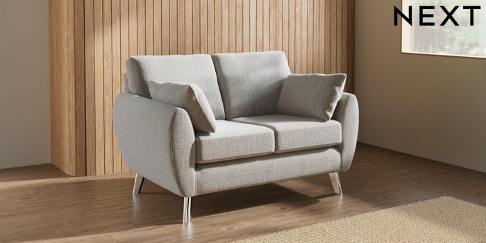 7.3.1 Buy Wilson 2 Seater Small Sofa Chunky Weave Dove Grey Metal Tapered - Chrome from the Next UK online shop