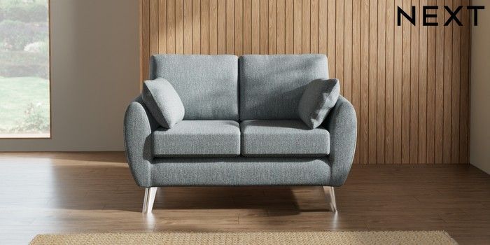 7.3.1 Buy Wilson 2 Seater Small Sofa Chunky Weave Mid Blue Metal Tapered - Chrome from the Next UK online shop