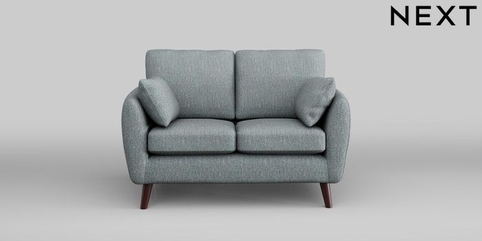 6.12.1 Buy Wilson 2 Seater Small Sofa Chunky Weave Mid Blue Retro Tapered - Dark Brown from the Next UK online shop Click here to use our accessible website