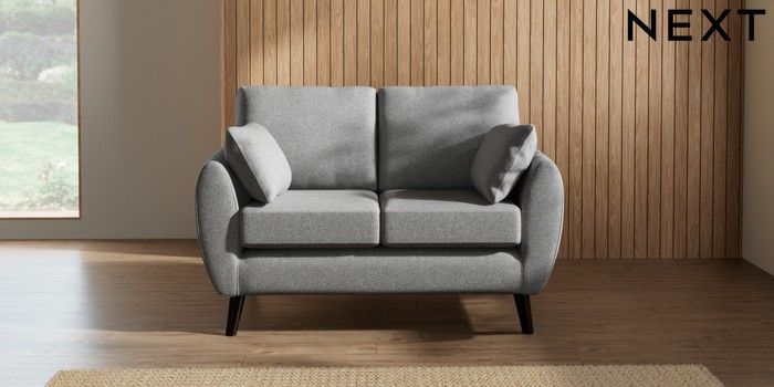 7.2.10 Buy Wilson 2 Seater Small Sofa Chunky Weave Mid Grey Retro Tapered - Dark from the Next UK online shop Click here to use our accessible website
