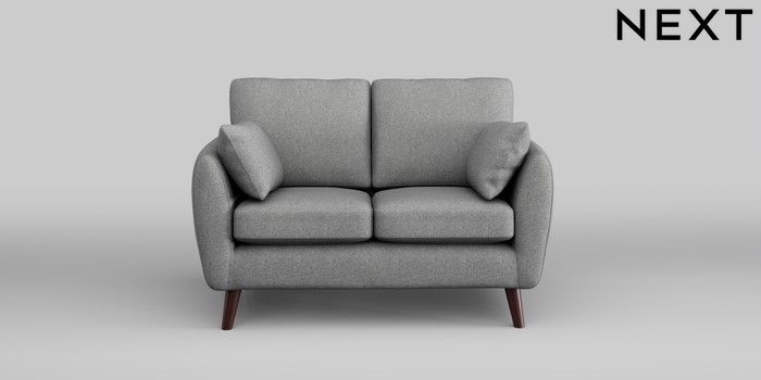 6.12.1 Buy Wilson 2 Seater Small Sofa Chunky Weave Mid Grey Retro Tapered - Dark Brown from the Next UK online shop Click here to use our accessible website