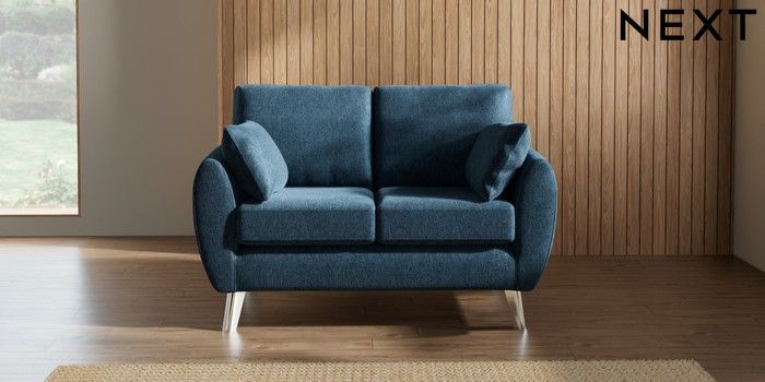 7.3.1 Buy Wilson 2 Seater Small Sofa Cotswold Chenille Dark Blue Metal Tapered - Chrome from the Next UK online shop Click here to use our accessible website