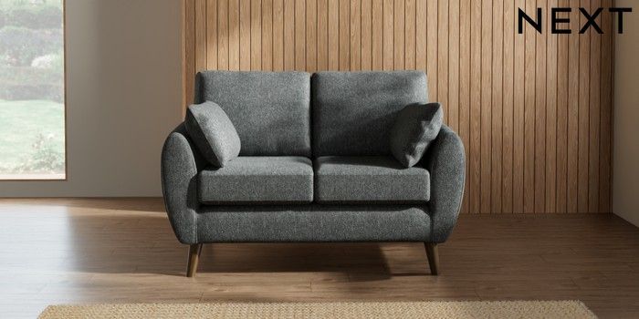 7.2.10 Buy Wilson 2 Seater Small Sofa Cotswold Chenille Dark Grey Retro Tapered - Mid from the Next UK online shop Click here to use our accessible website