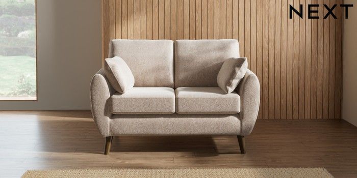 7.3.1 Buy Wilson 2 Seater Small Sofa Cotswold Chenille Light Natural Retro Tapered - Mid from the Next UK online shop
