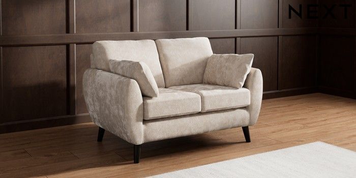 7.3.1 Buy Wilson 2 Seater Small Sofa Distressed Velour Mid Natural Retro Tapered - Dark from the Next UK online shop