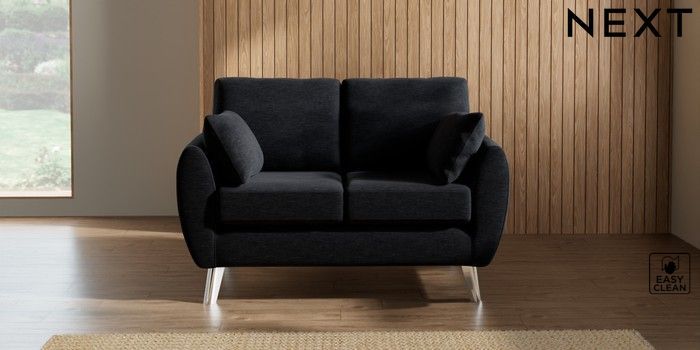 7.3.1 Buy Wilson 2 Seater Small Sofa Fine Chenille Easy Clean Black Metal Tapered - Chrome from the Next UK online shop