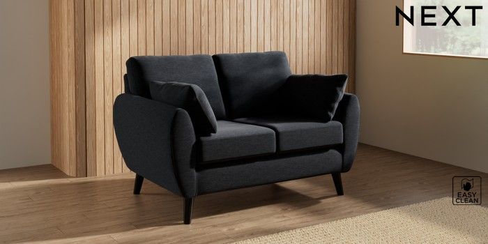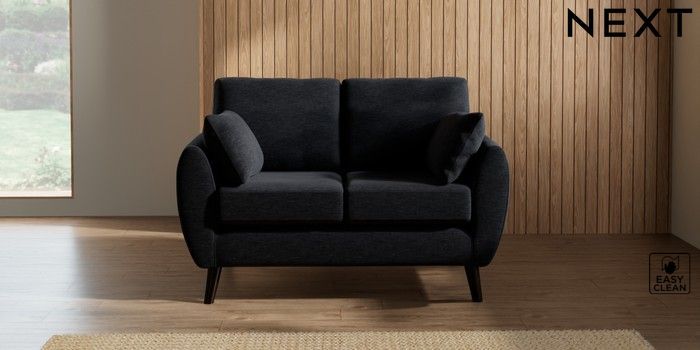 7.3.1 Buy Wilson 2 Seater Small Sofa Fine Chenille Easy Clean Black Retro Tapered - Dark from the Next UK online shop